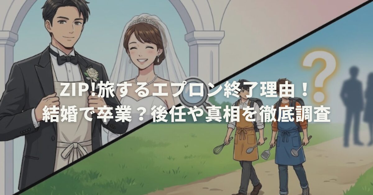 結論として、zip 旅するエプロン 終了理由は、現時点では「公式に終了が発表された事実」は確認できず、結婚報告などの事実をきっかけに“終了・卒業の憶測”が広がっている状態です。今後もし動きが出るなら、改編期の告知や公式発信が最も信頼できる判断材料になります。引き続き、二人の旅と料理を、感謝の気持ちで楽しんでいきましょう!